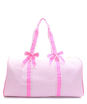 *Seersucker Shoulder Duffel Bag *Zipper Top *Frontside Zipper Pocket *Inside Zipper Pocket with Storage *Gingham Lining *Monogram Ready